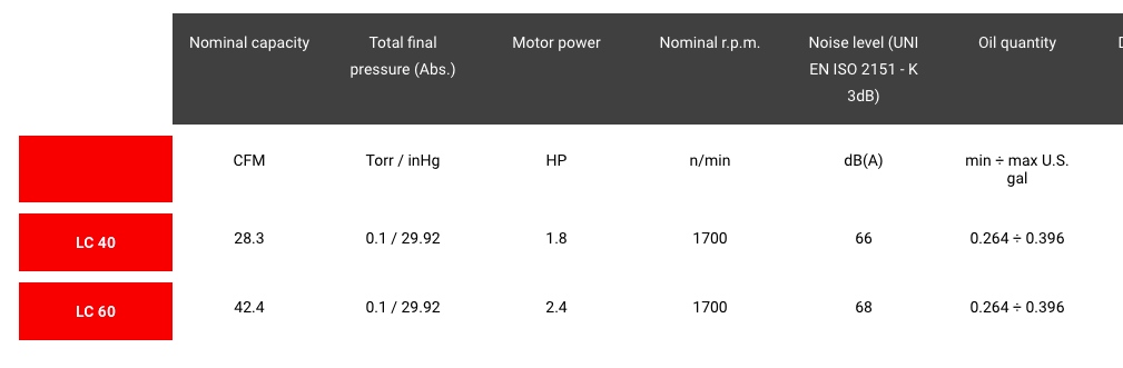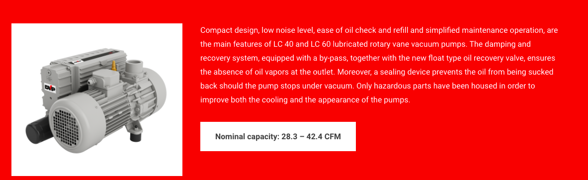 DVP Pumps - LC.40 | Oil Lubricated Rotary Vane Vacuum Pump | 1.8 HP, 28.3 CFM, 29.92" HgV, 66 dB(A) | 175-300V/300-520V/50-60Hz | 9601067/TN