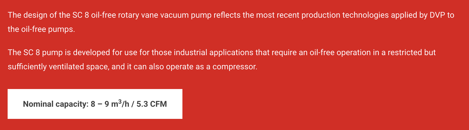 DVP Pumps, SC.8, 0.4 HP, Oil-Free Rotary Vane Vacuum Pump, 25.50 HgV Ultimate Vacuum | 175-300V/380-520V/50-60Hz | 9801032/TN